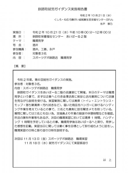 自立センターでは、平成24年度から毎年、釧路町の委託を受けて「釧路町・就労ガイダンス(一般就労入門講習)」を実施しております。